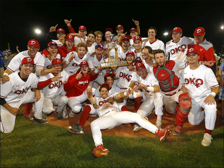 The Dawgs posted a four-run bottom-of-the-eighth inning to come back for the second time, to not only rip the hearts out of the Scarlet Stockings, but also inflict historical revenge after the Red Sox won the 2012 title on Seaman Stadium soil. Bellevue University commit Liam Rihela opened the scoring with one swing of the bat, albeit on his third try during his leadoff at-bat in the bottom of the second. Okotoks also came out on top in game one, defeating Regina 7-2 at Currie Field in the Queen City. Tristan Peters, an outfielder with the Dawgs, was named the playoff MVP.