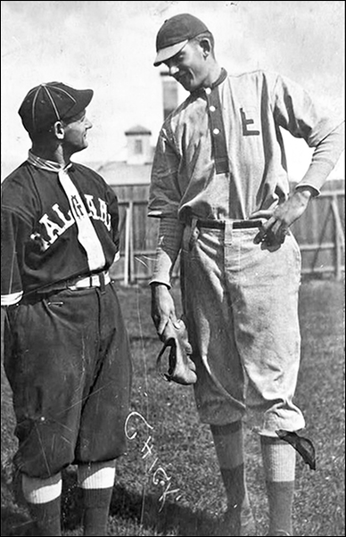 Left - 1914 WCBL opponents Larry Piper (right - outfielder Calgary Bronchos) and second baseman Fred Chick of Edmonton Eskimos. [Photo from Max Weder's Sports Ephemera]