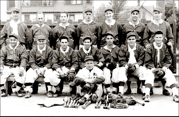 Front row - Lou DeMore Coach, Wish Milburn MGR, Ken Stanton, Mush Anselmo, Sammy Marasco, Mike Wolfe, Julie Bilesky. In front - Andy Bilesky