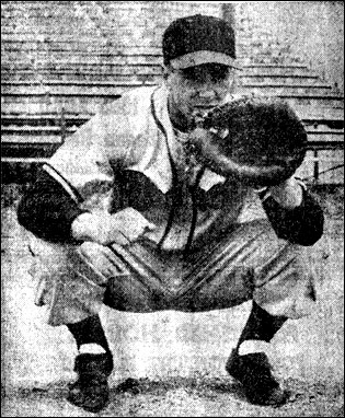 Above right - Bob Gregory, from the University of Oklahoma as catcher for the 1957 Moose Jaw Mallards.