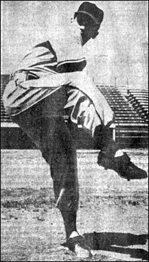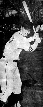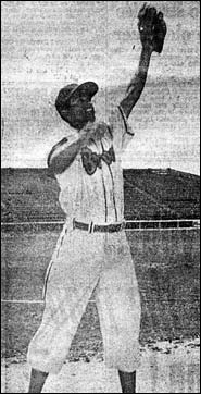 Right - Walt Tyler, quite a player with Moose Jaw in 1953 and 1954, doubled in Tucson's win over Cananea in the Arizona-Mexico League game. It was the 36th consecutive game in which Tyler had at least one hit, tying a league record. He was held hitless the next game. (Tucson Daily Citizen, August 6, 1957, photo from June 25, 1957)