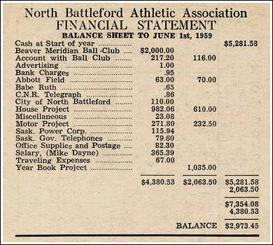 At the club's annual meeting (in February, 1960) Bill Ritchie's financial statement showed the Meridians with a surplus of about $1,000. The team had revenues of $38, 711.27. Team salaries came to $16, 469.39.
